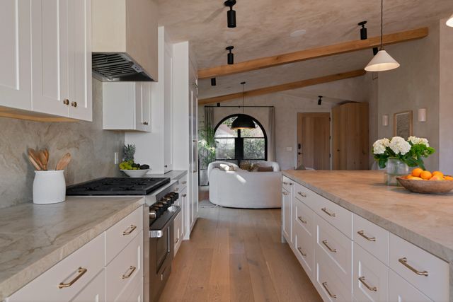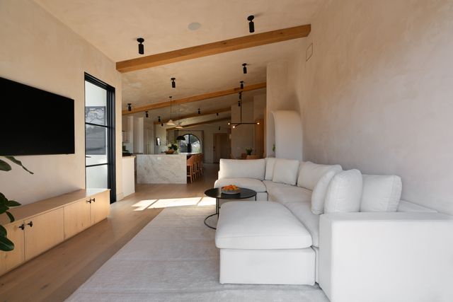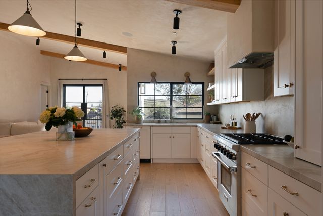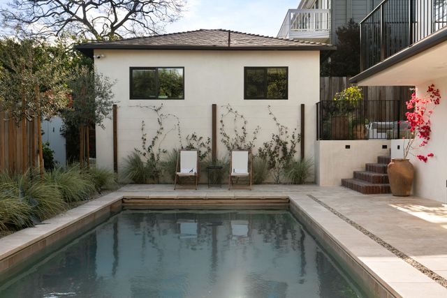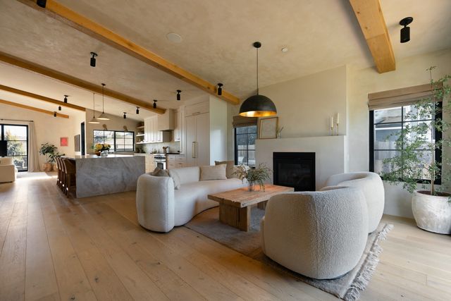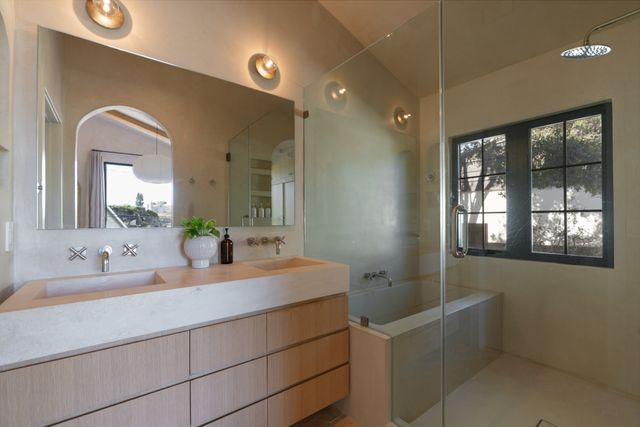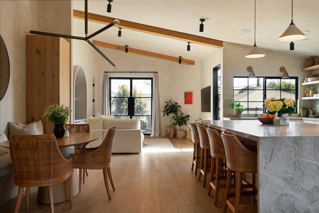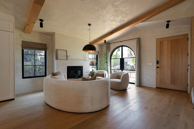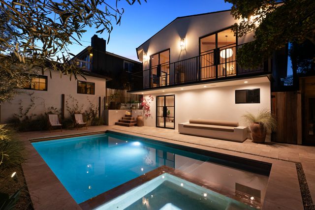 Designed by Vein Design, this meticulously curated 5-bedroom, 4.5-bathroom home is a rare find, blending timeless craftsmanship with modern luxury in a quiet cul-de-sac that offers both privacy and tranquility. Every detail has been thoughtfully considered, incorporating custom white oak cabinetry, artisan tile, and Taj Mahal quartzite countertops, alongside custom cushions, black iron doors, Venetian plaster, and limewashed walls. The open-concept layout seamlessly connects indoor and outdoor living, with high-end appliances and Sonos in-ceiling speakers enhancing both comfort and functionality.